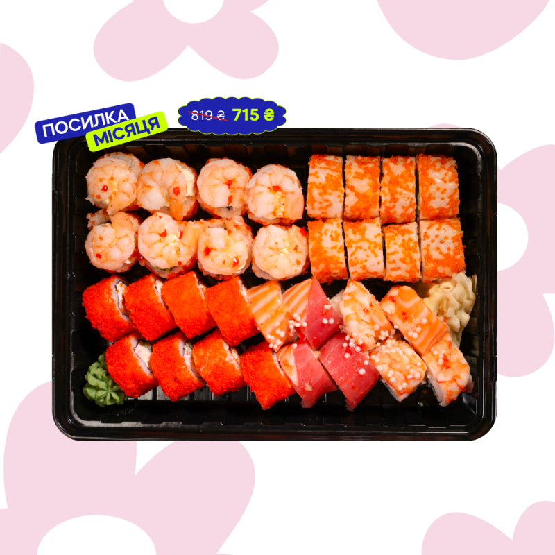 - На сайті SushiPoshta ви знайдете широкий вибір ролів та суші. Від класичних варіантів, таких як Каліфорнія та Філадельфія, до ексклюзивних авторських ролів. Ви обов’язково знайдете щось до смаку!