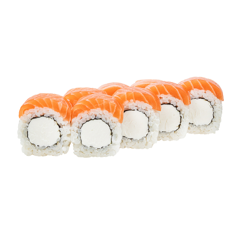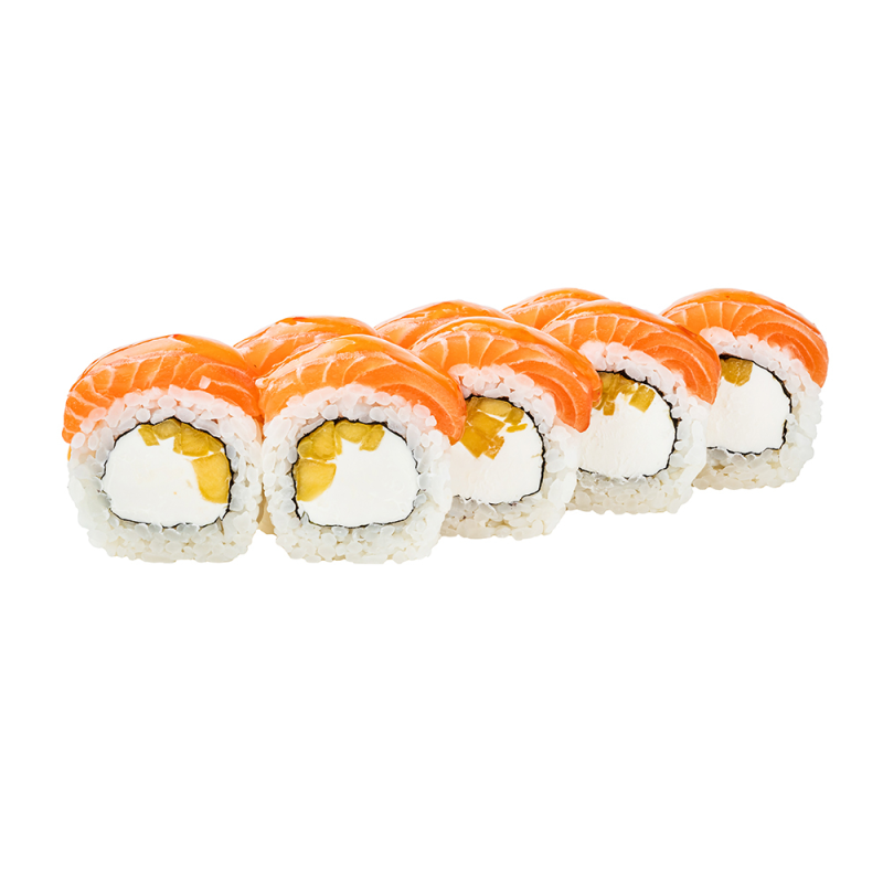 Рис, норі, крем-сир, лосось, огірок, соус унагі, соус спайсі майонез.