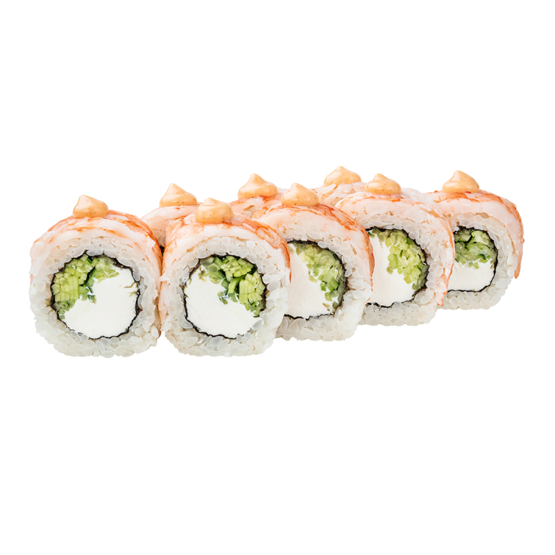 Рис, норі, креветка, крем-сир, огірок, спайсі майонез.