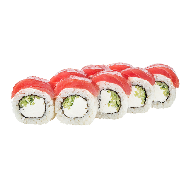 Рис, норі, тунець, крем-сир, огірок, соус понзу, мікс соусів унагі та спайсі майонез.