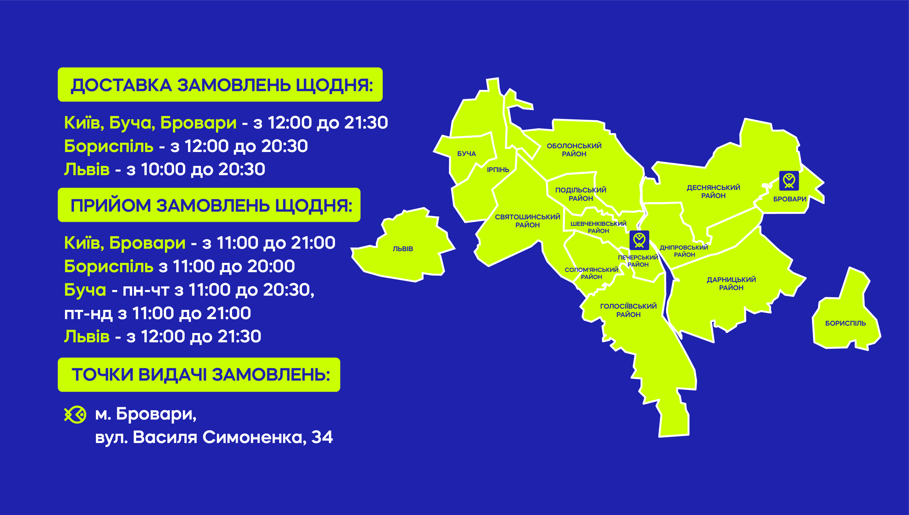Sushi Poshta coverage area: Kyiv, Boryspil, Brovary and Bucha.